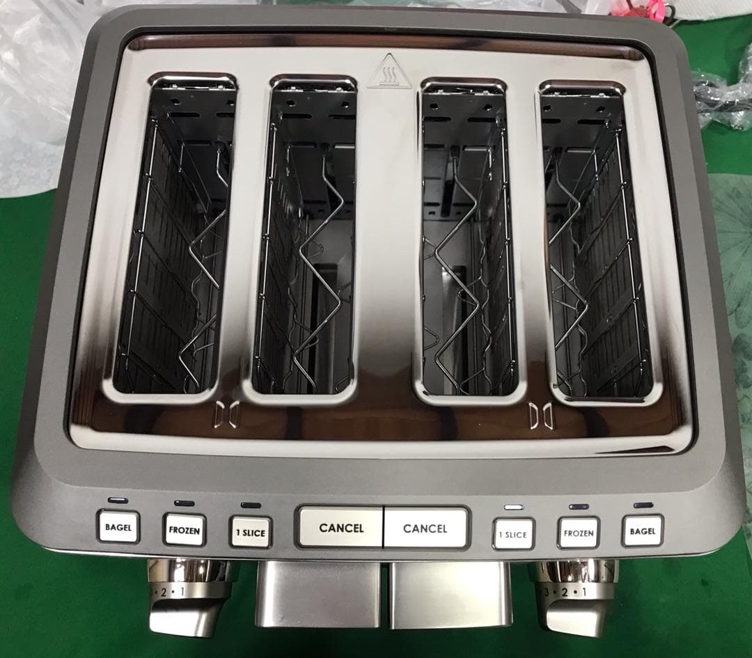 This was such an exciting product to test out, as I was just thinking about how I would like a four-slice toaster. Out of the box I could tell it was very heavy and much larger than I expected, which is actually a good thing for me. I love how the slots are oversized so that my thick sliced sourdough bread can fit in there. It has several different functions to choose from, which is nice when making bagels. The only downside for me is that upon completing the timed cycle, it does give off a single toned, three beep timer signal, and it isn't quiet. The toast came out evenly tpasted, but it does typically take longer than I expected it to. I love the style of the toaster with the stainless steel. It goes well with the rest of my appliances. It is so beautiful and well-made and I don't mind having it on the countertop. There are two crumb trays to make cleaning the crumbs easier. I recommend! It is such a high-quality, professional grade toaster!