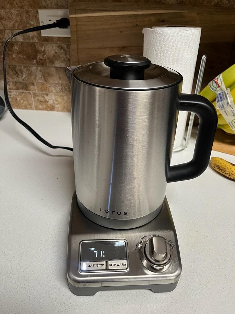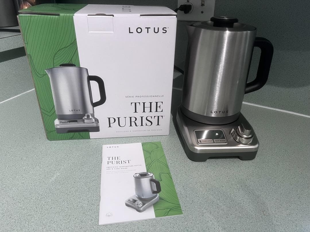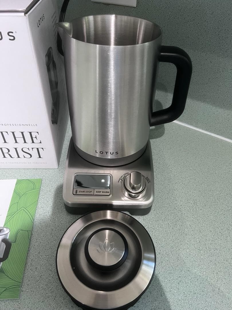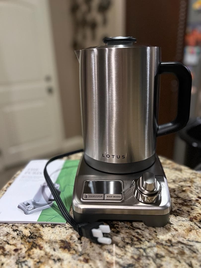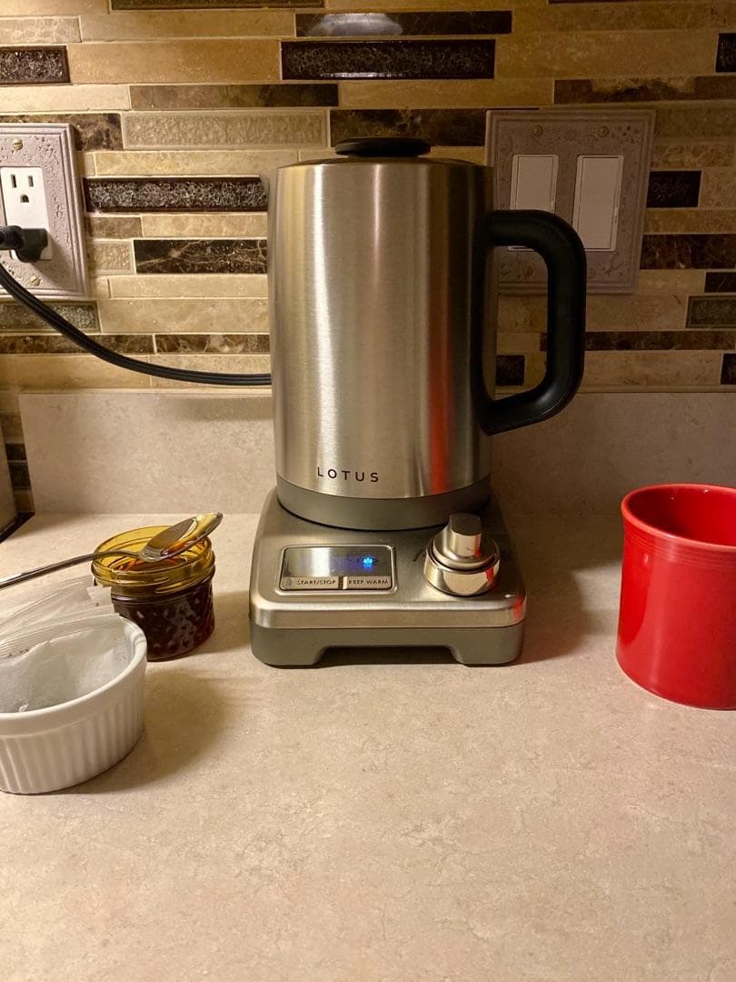 My initial thoughts upon opening the Lotus is that this is one industrial looking kettle. It’s a stainless steel cylinder with a black handle. Not exactly my aesthetic. My husband joked that it looked perfect for an underground bunker. It looks like it was built to survive an apocalypse. But, I am an avid tea drinker and this kettle is much more functional than the one I currently have. The dial on the base allows you to choose the temperature setting based on the type of tea you are brewing. Black and herbal teas need a hotter water than green, white or oolong teas. Being able to set a dial based on my tea of choice and not having to start with boiling water is a huge plus. It also has a keep warm function so that I can have hot water ready to go for my next cup of tea for up to an hour. The kettle has markings inside and in both ounces and milliliters. It holds up to 48 ounces, which is more than my current kettle holds. This does mean it takes longer to heat up, but that’s a small price to pay to have more water ready to go at one time. It’s still faster than using the stove, so I don’t mind waiting a bit longer for more water. In all, this kettle is great! It’s very functional and I highly recommend it to anyone in need of a new kettle. It’s not the prettiest kettle you can find, but it’s a work force and I love it.
